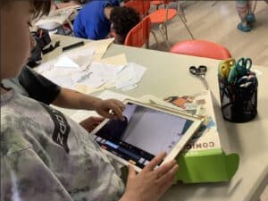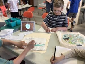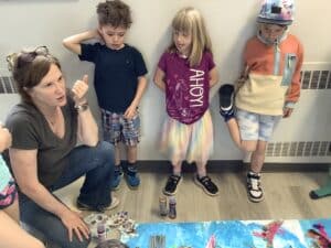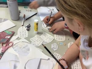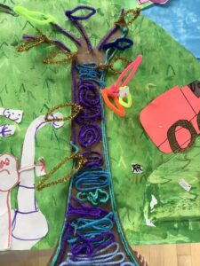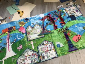 Peinture, collage, dessin… les enfants s’amusent tout en travaillant ensemble à une œuvre pleine de couleurs et d’imagination !
